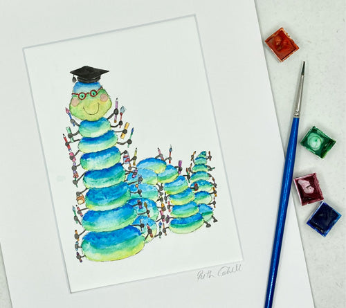 All artwork is mounted, signed and captioned with a backboard and packaged in a Cellophane Bag for gifting with information about Ruth and Duck Blue. They really make an ideal gift.