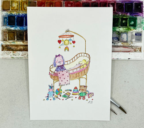 All artwork is mounted, signed and captioned with a backboard and packaged in a Cellophane Bag for gifting with information about Ruth and Duck Blue. They really make an ideal gift.