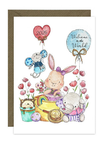Standard Size - 152mm x 104mm (A6) when folded - Welcome to the World - 2026 on front